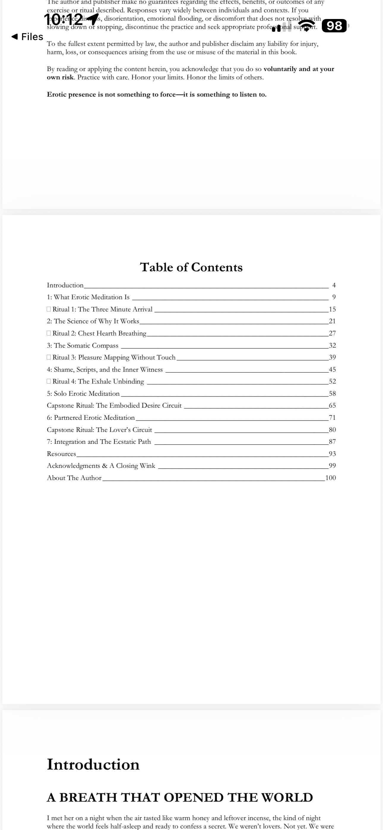 • 7 full chapters on breath, presence, shame, desire, solo and partnered practice